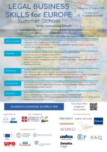 Venerdì 21 settembre, presso il Campus Luigi Einaudi, si è svolta la giornata conclusiva della Summer School “Legal Business Skills for Europe“, con un incontro tra i giovani e motivati partecipanti e le aziende e gli studi legali.