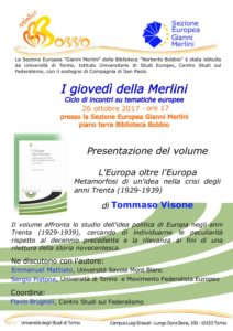 Giovedì 26 ottobre 2017 – ore 17 presso la Sezione Europea Gianni Merlini piano terra Biblioteca Bobbio