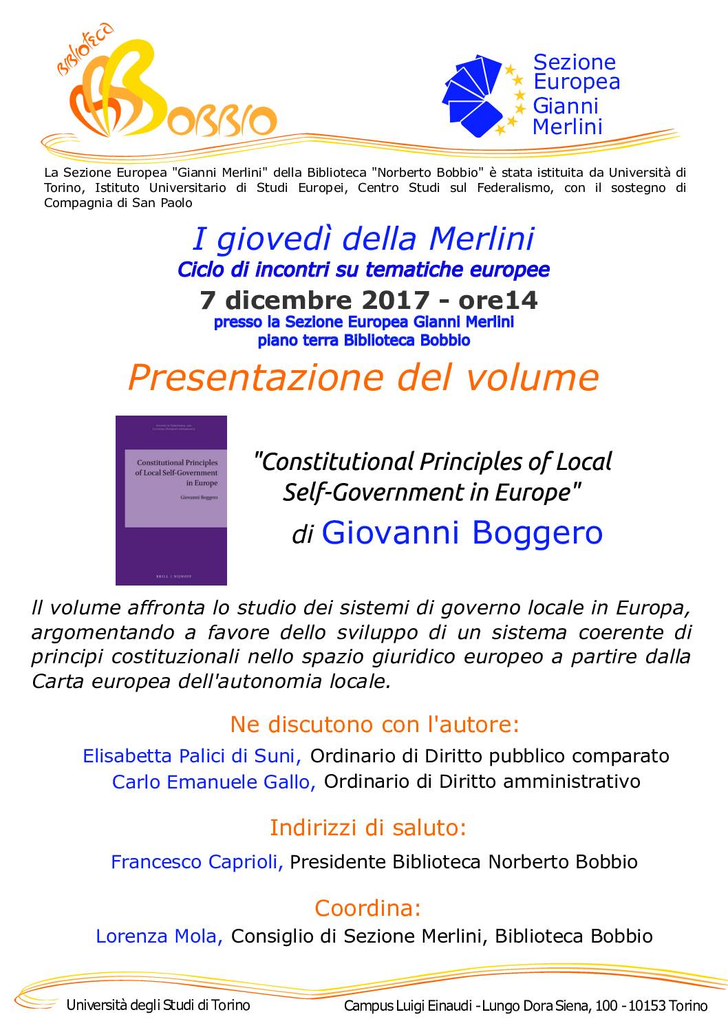 7 dicembre 2017 – ore14 presso la Sezione Europea Gianni Merlini – piano terra Biblioteca Bobbio